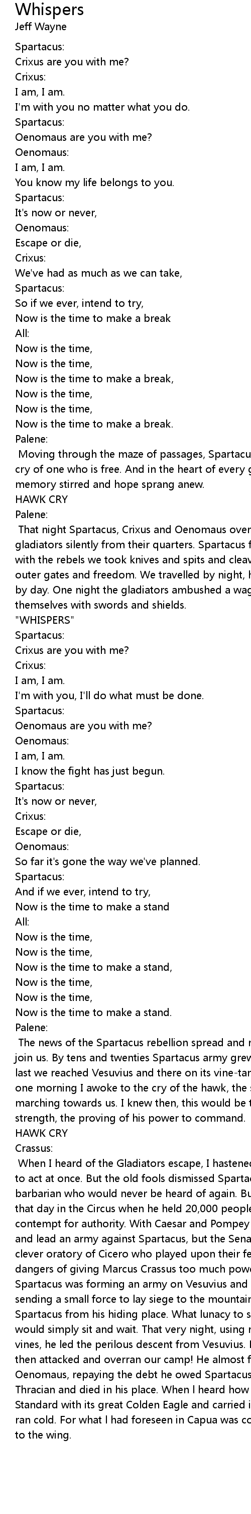 Moving through the maze of passages, Spartacus gave the cry of the hawk, the cry of one who is free. And in the heart of every gladiator a half-forgotten memory stirred and hope sprang anew. |