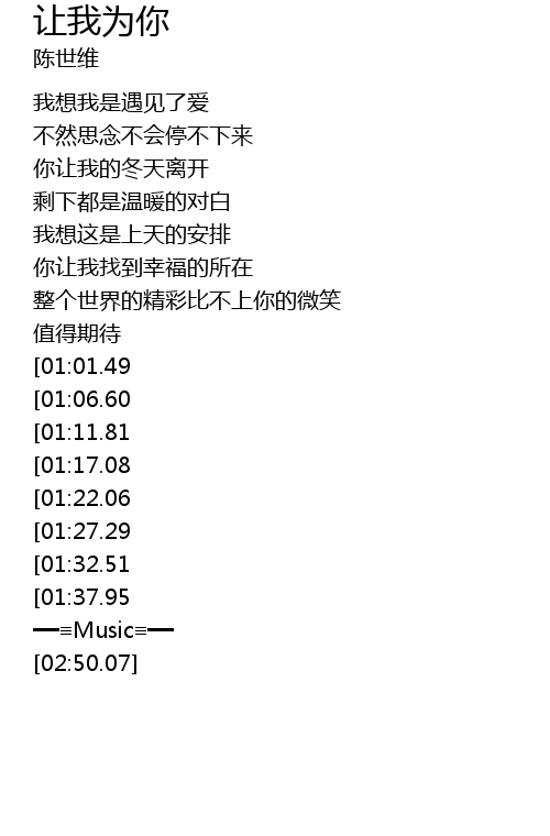 | [02:24.07][01:22.06] | 让我陪你一直走到未来 |