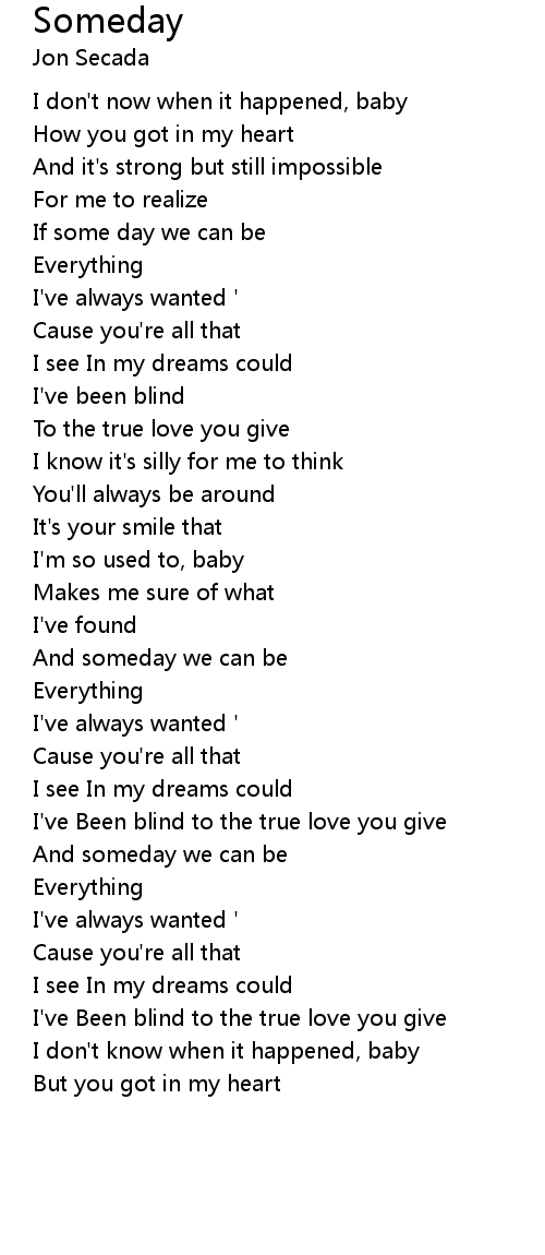 And someday we can be |