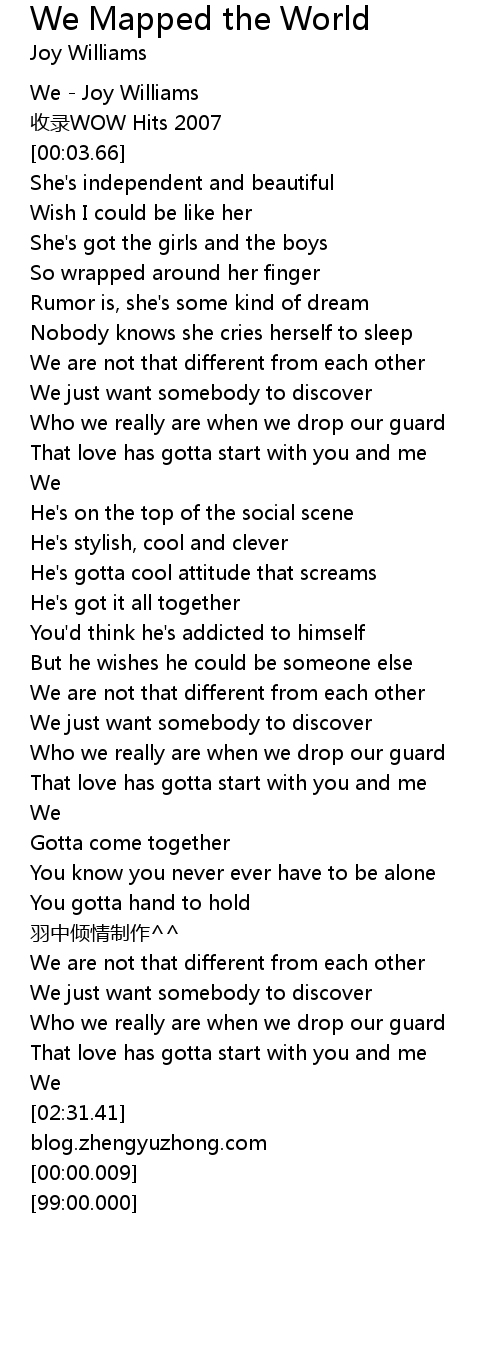 | [00:02.66] | We Joy Williams |