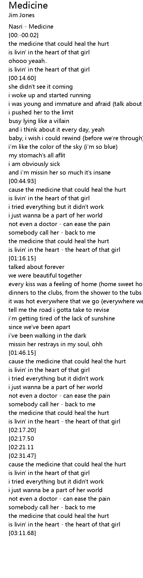 the medicine that could heal the hurt |