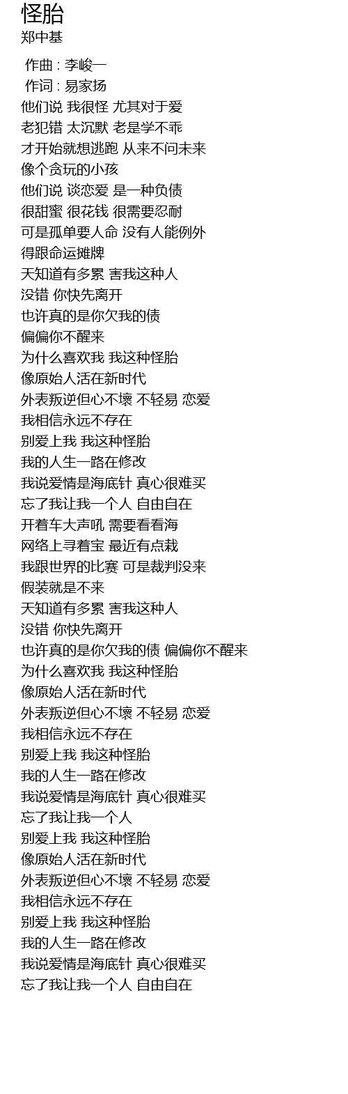 | [00:16.520] | 他们说 我很怪 尤其对于爱 |