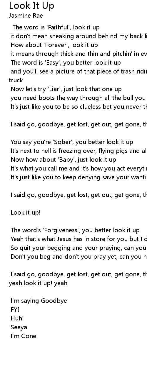 I said go, goodbye, get lost, get out, get gone, the word is Over, over, over! yeah look it up! yeah |