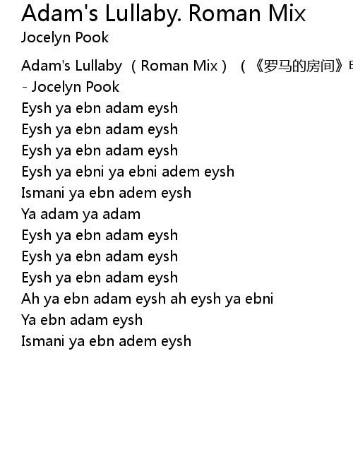 | [00:00.10] | Adam' s Lullaby Roman Mix luó mǎ de fáng jiān diàn yǐng chā qǔ Jocelyn Pook |