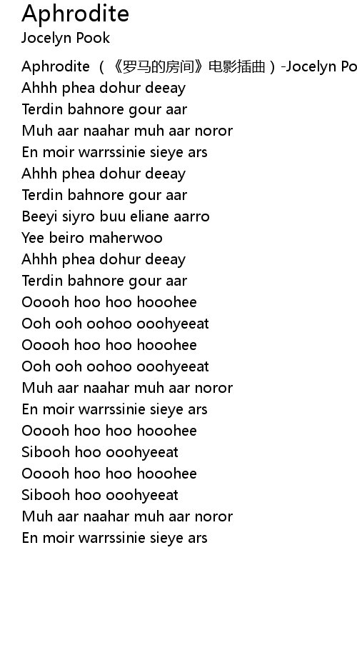 | [00:00.793] | Aphrodite (《罗马的房间》电影插曲)-Jocelyn Pook |