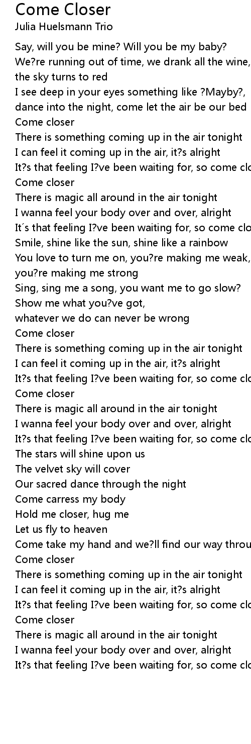 | It? s that feeling I? ve been waiting for, so come closer | |