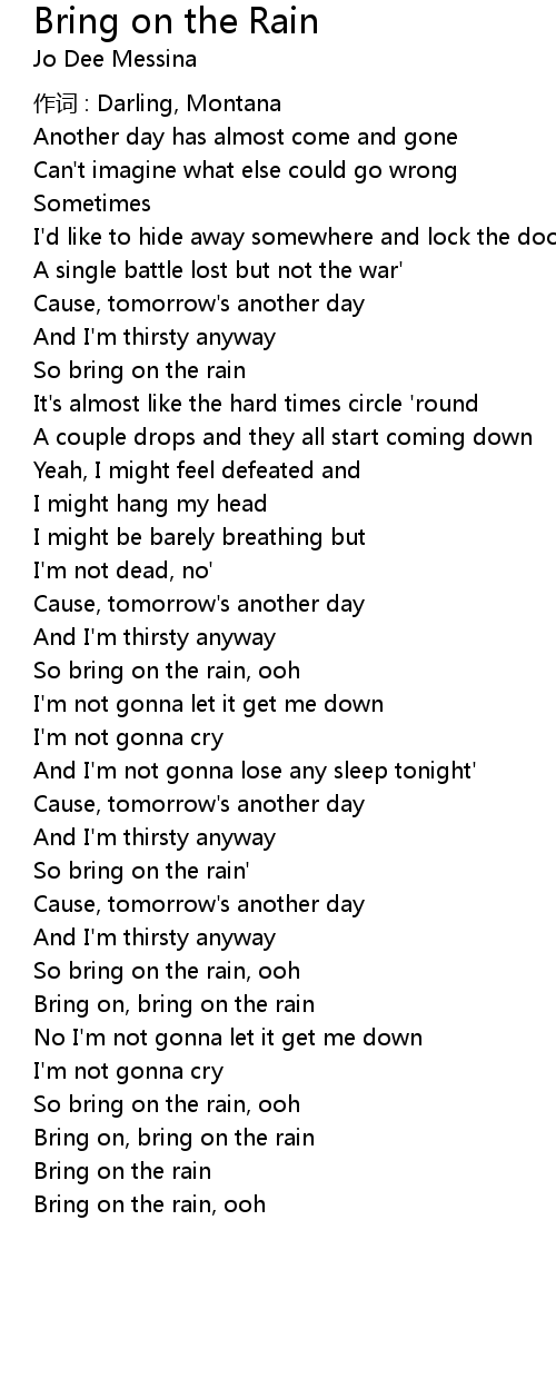 | Bring on, bring on the rain | |