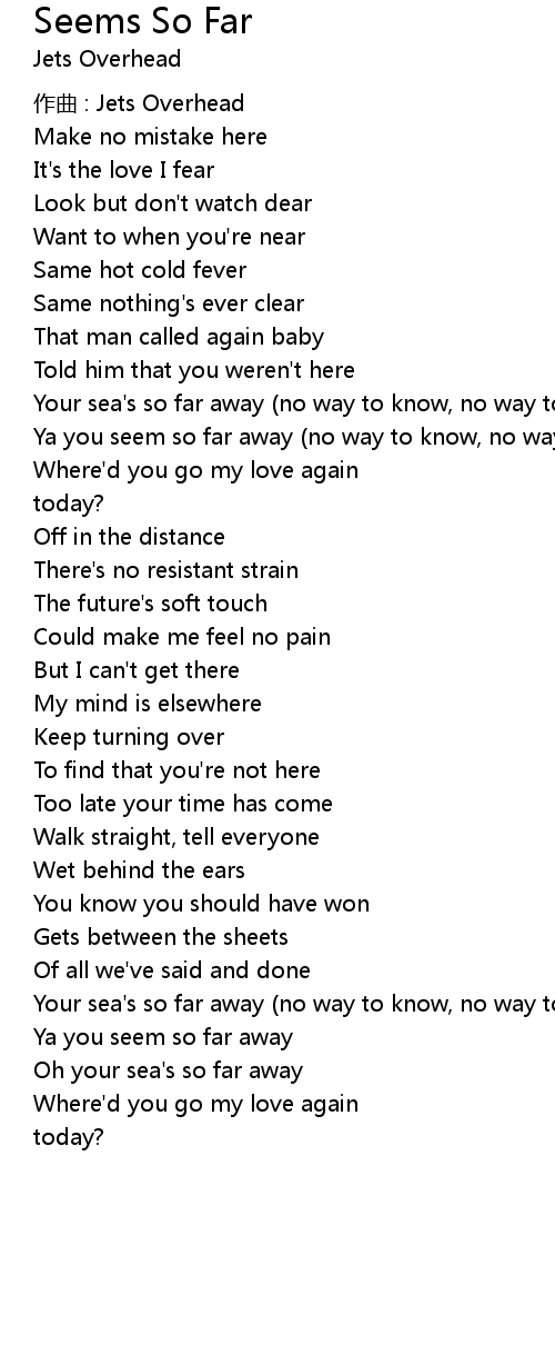 | Ya you seem so far away no way to know, no way to know | |