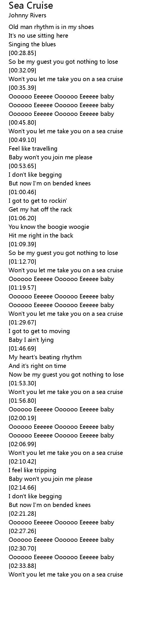 Won't you let me take you on a sea cruise |