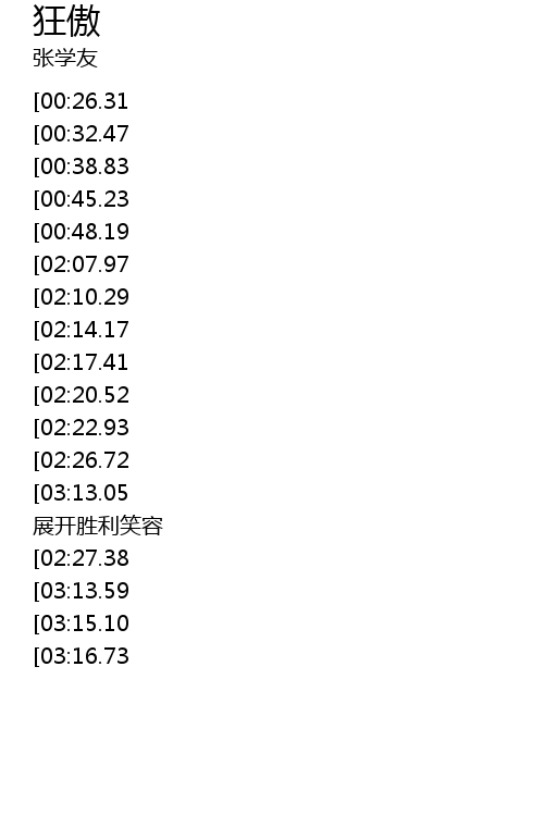 | [03:02.00][02:20.52][01:05.66] | 狂傲有狂傲痛 |