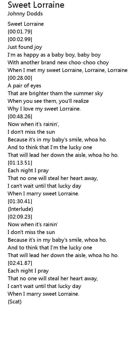 When I met my sweet Lorraine, Lorraine, Lorraine. |