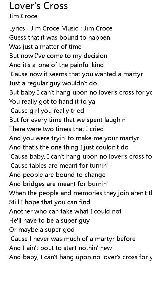 | Lyrics:Jim Croce Music:Jim Croce | |