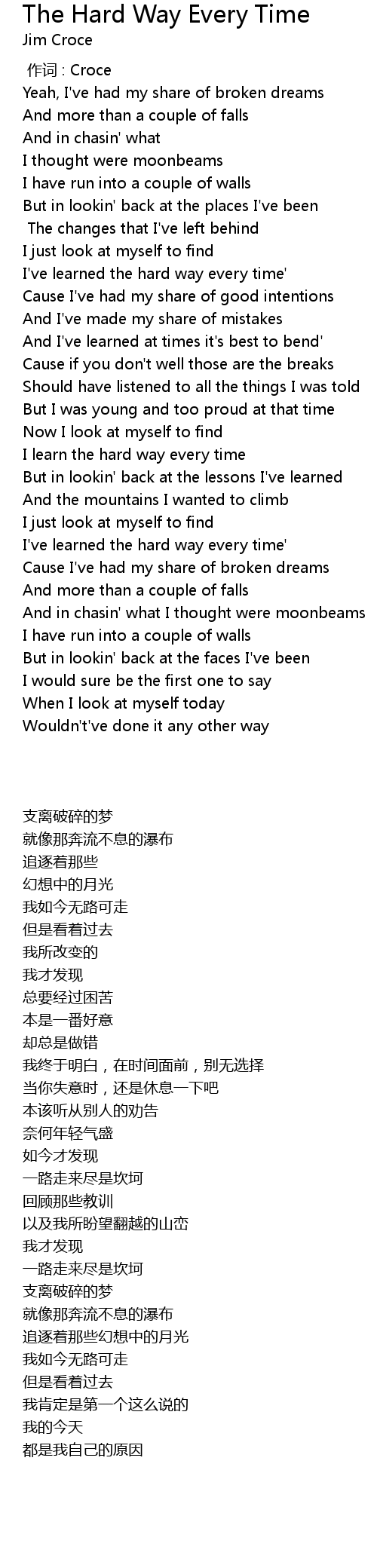 | [01:08.000] | I learn the hard way every time |