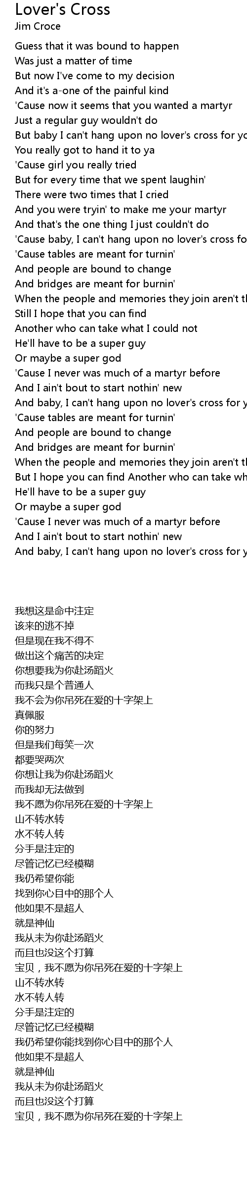 And baby, I can't hang upon no lover's cross for you |