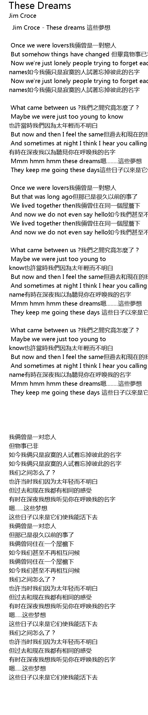 | Jim Croce These dreams zhè xiē mèng xiǎng | |