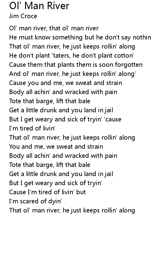 And ol' man river, he just keeps rollin' along' |