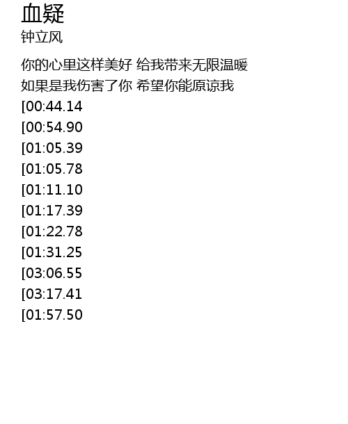 | [02:16.95][00:44.14] | wo hai qing ni cong jin yi hou wan wan quan quan ba wo yi wang |
