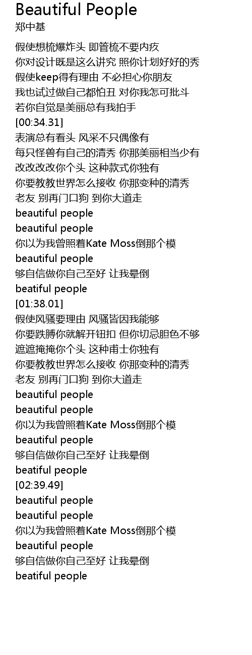 | [02:22.78] | ni yi wei wo ceng zhao zhe Kate Moss dao na ge mo |