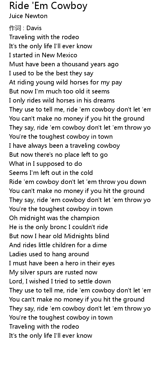 | Ride 'em cowboy don't let 'em throw you down | |