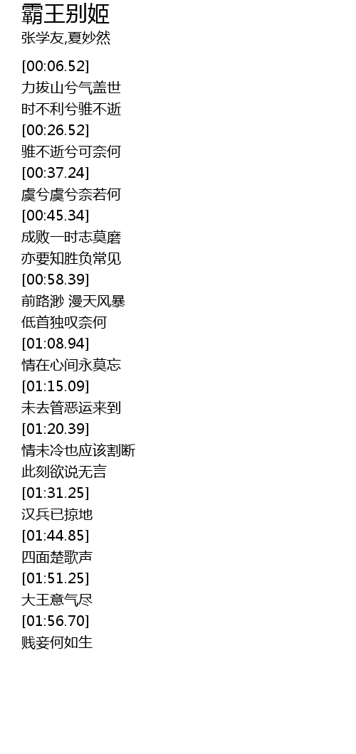 | [00:38.14] | 虞兮虞兮奈若何 |