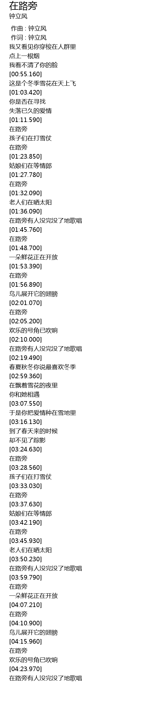 | [04:00.360] | 在路旁 |