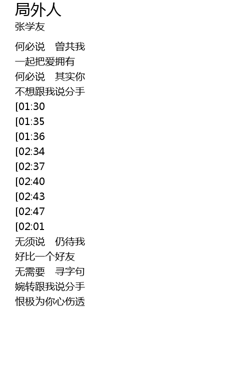 | [01:27] | wǎn zhuǎn gēn wǒ shuō fēn shǒu |
