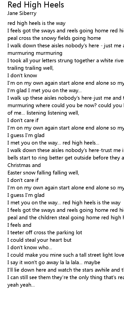 I feels got the sways and reels going home red high heels and the church bells peal and the children steal going home red high heels is the way |