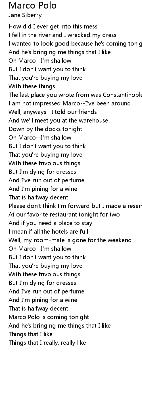 Marco Polo is coming tonight |