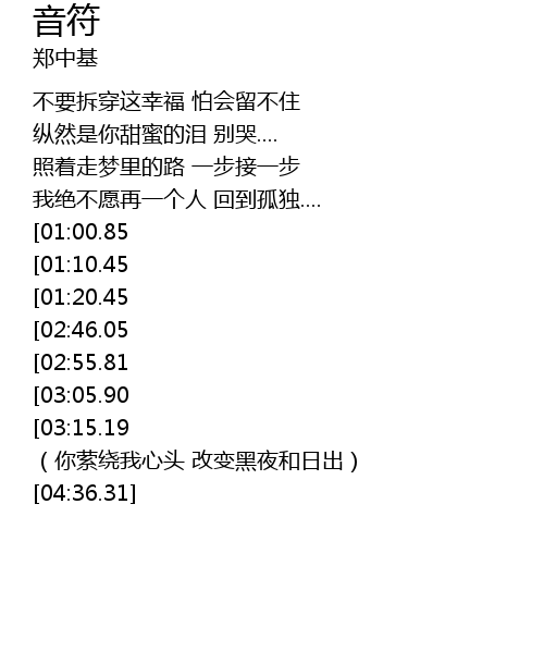 | [03:30.09][02:46.05][01:22.60] | 你是我血液里 流过美丽的音符 |