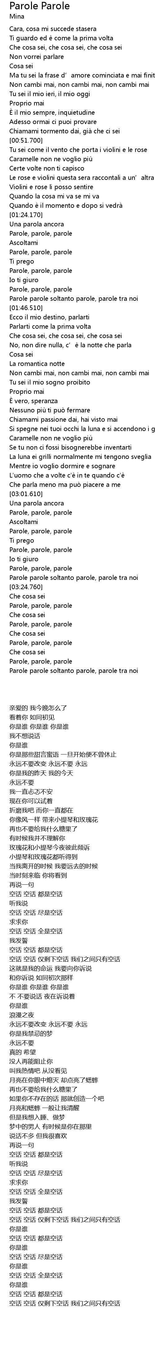 | [03:40.470] | Parole parole soltanto parole, parole tra noi |