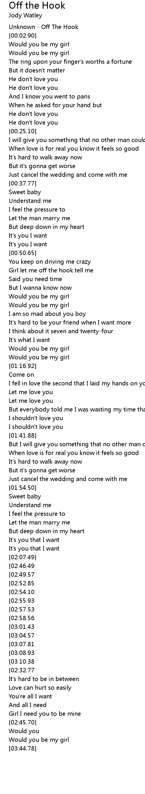 Girl let me off the hook tell me |