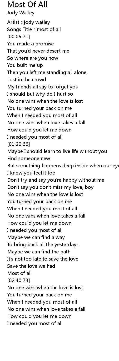 | [01:45.72] | Don' t try and say you' re happy without me |