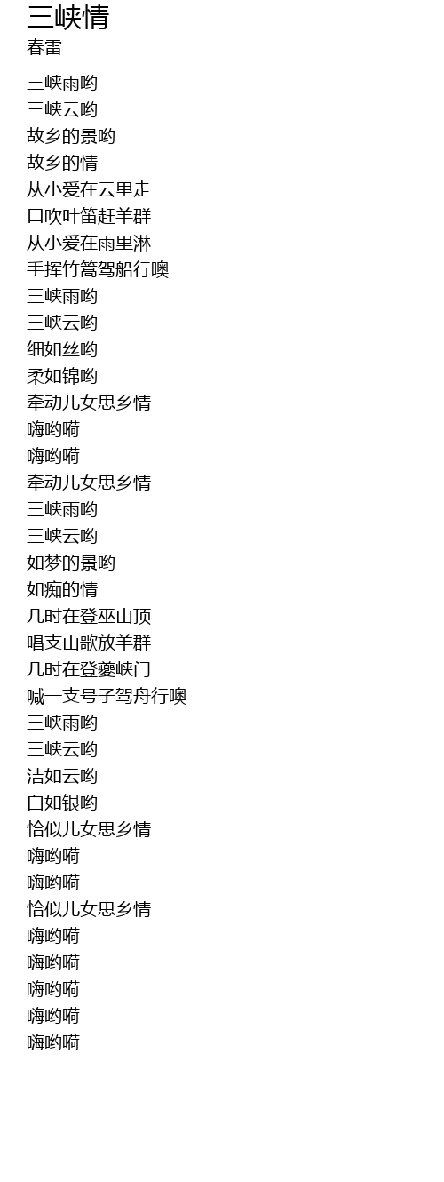 | [02:29.340] | 三峡雨哟 |