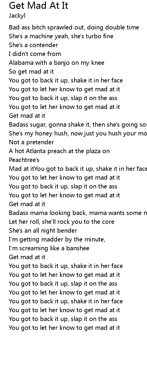 Mad at itYou got to back it up, shake it in her face |
