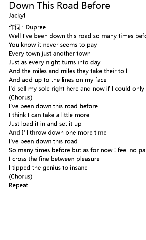 | Song | Down This Road Before |
