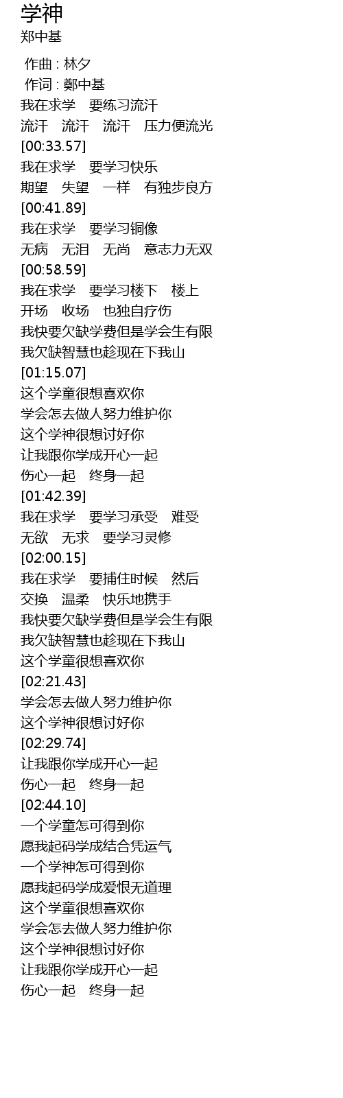 | [00:34.12] | wo zai qiu xue yao xue xi kuai le |