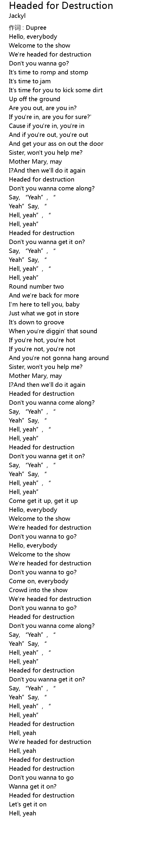 | Song | Headed for Destruction |