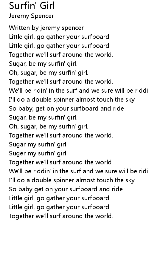 Oh, sugar, be my surfin' girl. |