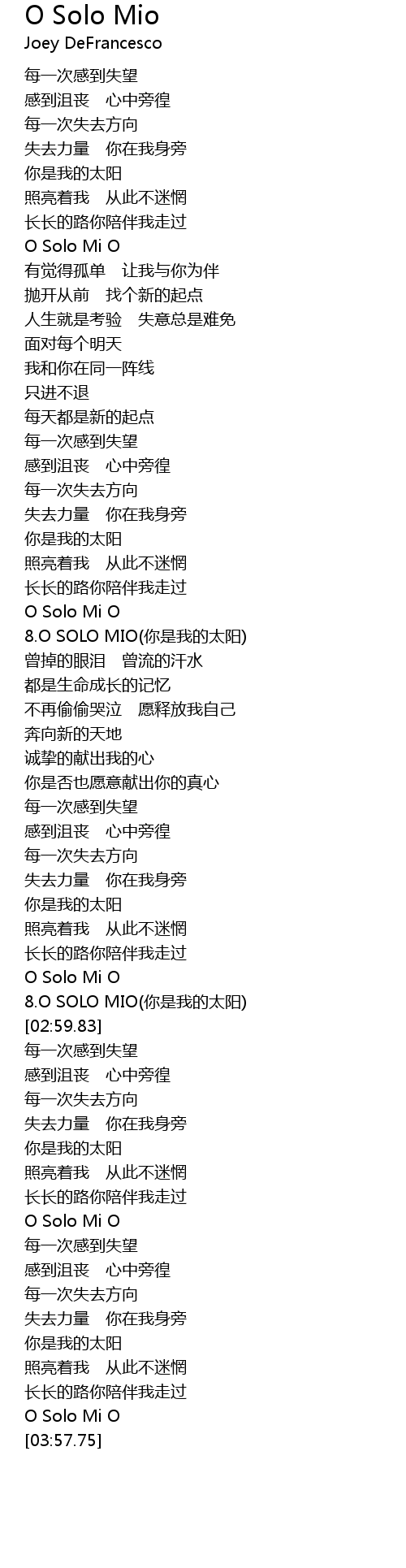 | [01:42.10] | 8.O SOLO MIO(你是我的太阳) |