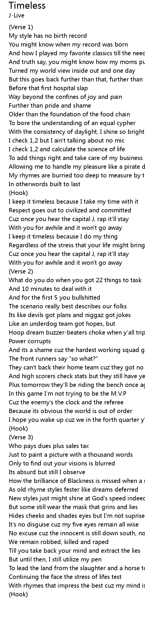 With rhymes that impress the best cuz my mind is timeless |