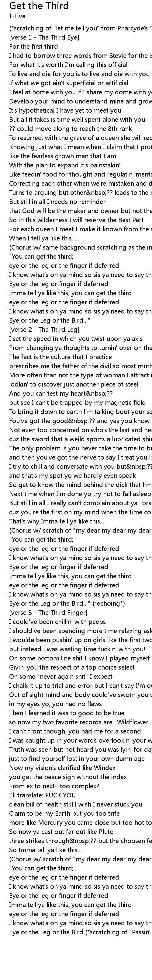 (*scratching of "let me tell you" from Pharcyde's "Passin' Me By"*) |