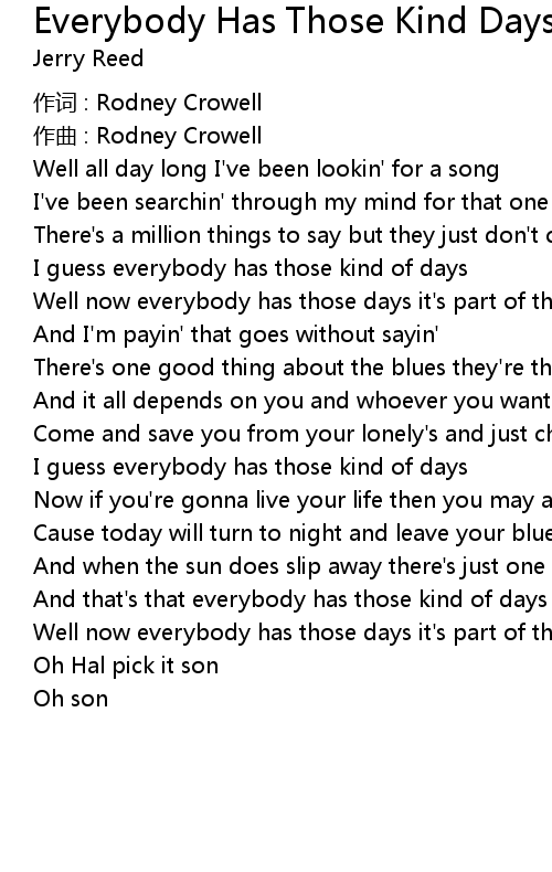 | Well now everybody has those days it' s part of the dues you got to pay... | |