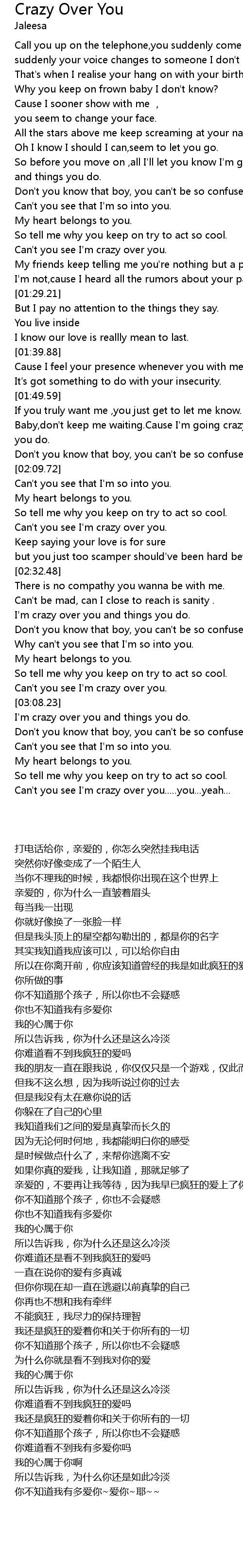 | [03:24.85] | Can't you see I'm crazy over you.....you...yeah... |