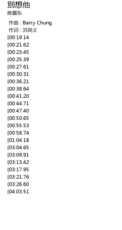 | [03:53.83][03:21.76][01:27.97] | 别想他 让风吹散你的发 |