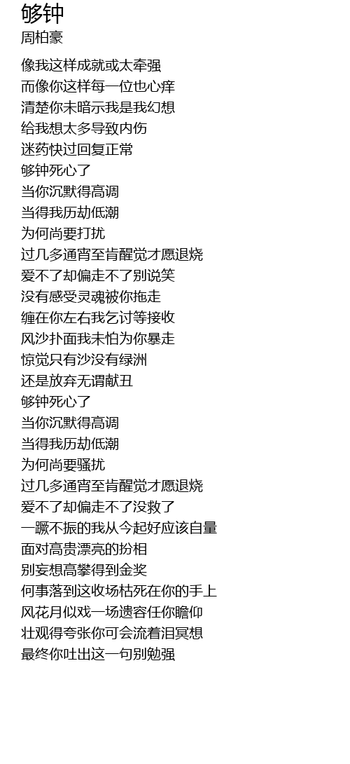 | [00:42.740] | gòu zhōng sǐ xīn le |