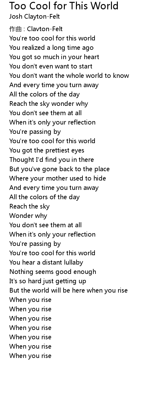 | You' re too cool for this world | |