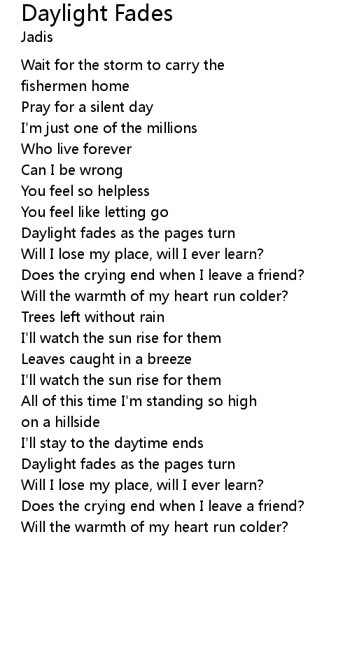 I'll stay to the daytime ends |
