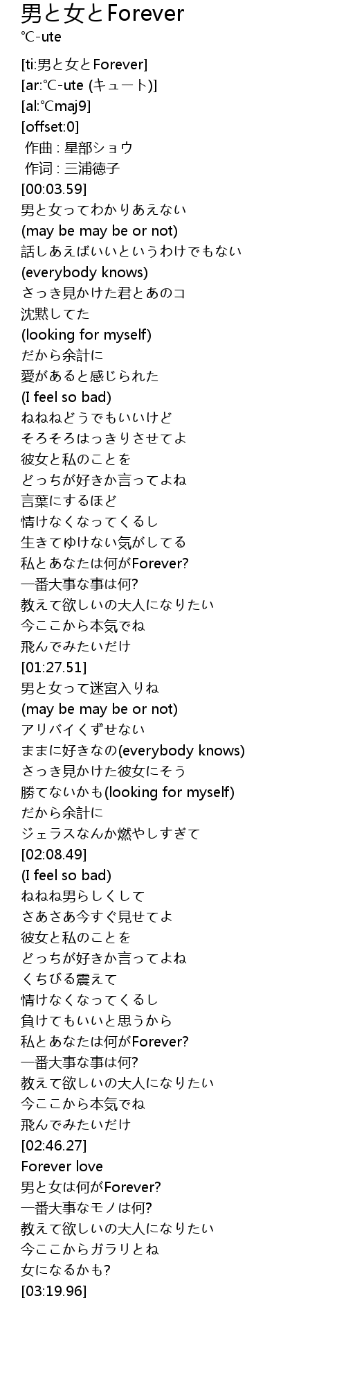 | [03:00.40] | 男と女は何がForever? |