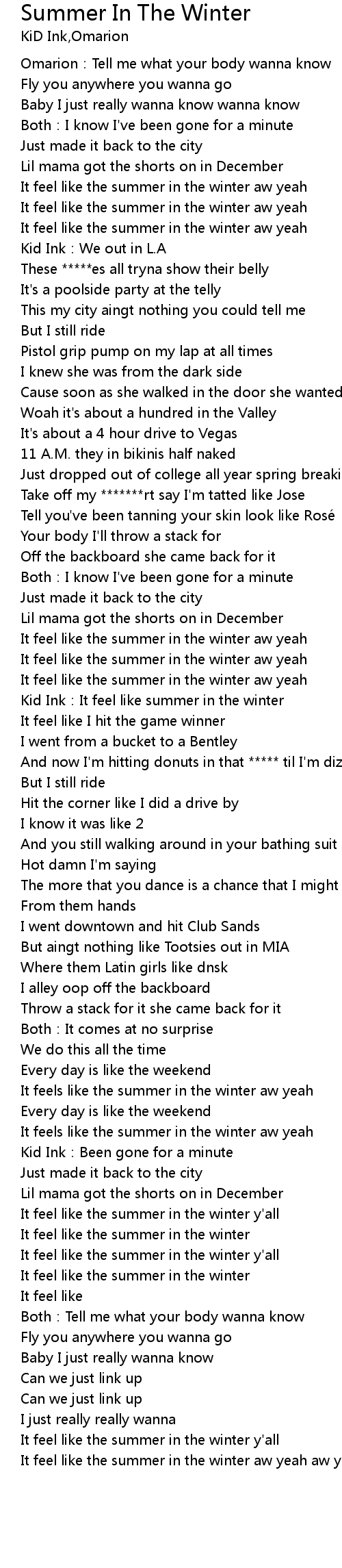 | [01:27.28] | Kid Ink:It feel like summer in the winter |