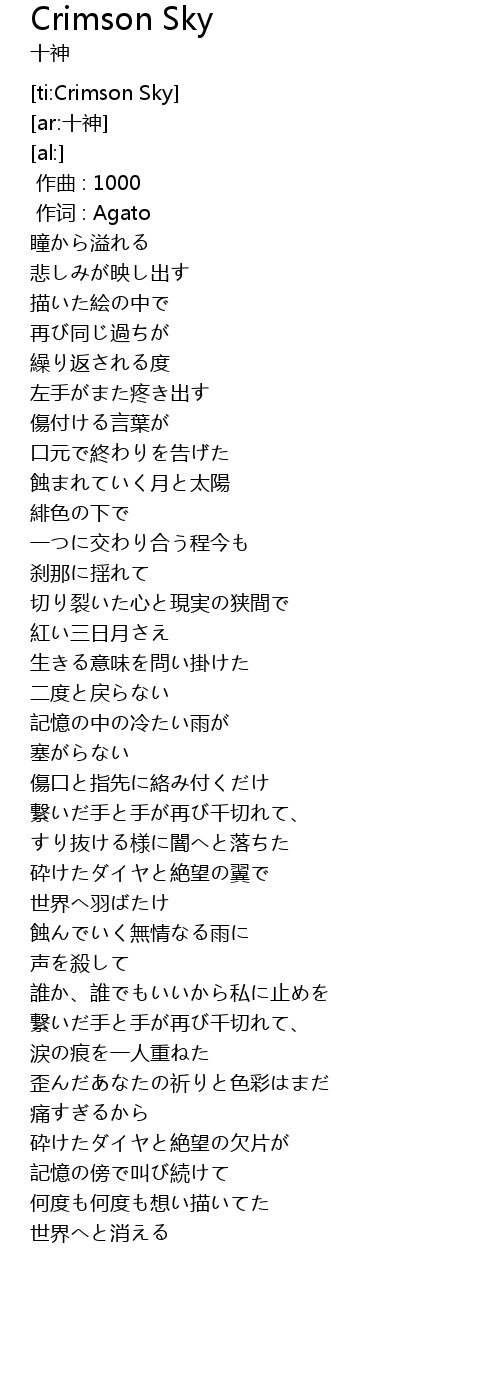 | [02:13.34] | 砕けたダイヤと絶望の翼で |